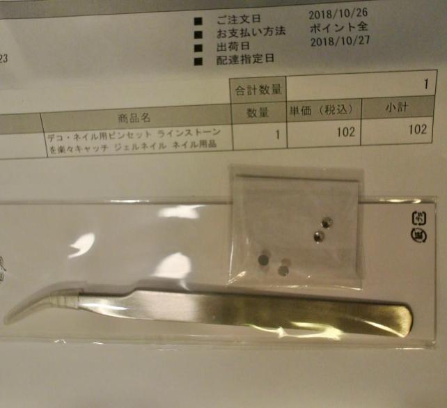 ネイルアート用品の専門店だからでしょうか、ラインストーンが5粒サービスとして同封されてました