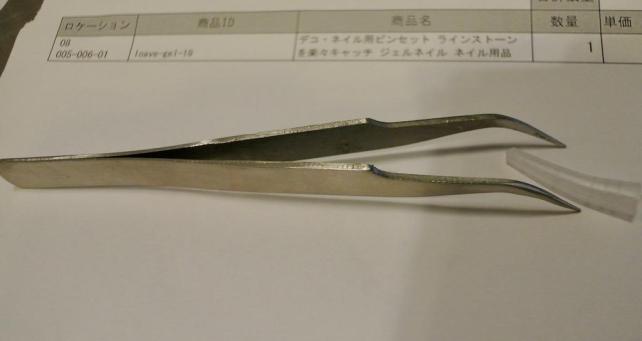 小さなラインストーンを確実に摘めるように 先がカーブしています