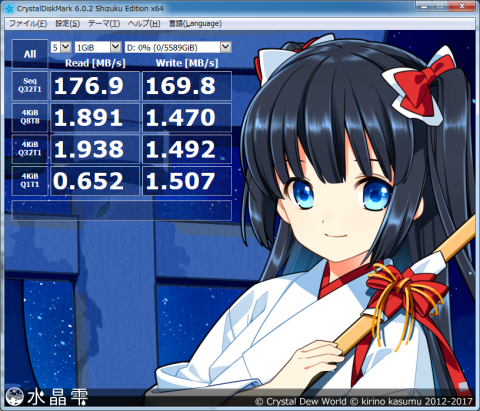 CrystalDiskMark 6.0.2 Shizuku Edition x64 (C) 2007-2018 hiyohiyo
