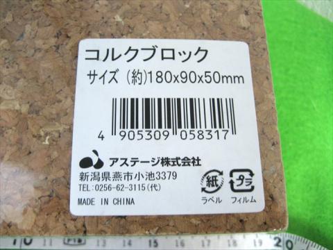 コルクブロック 180×90×50mm アステージ株式会社