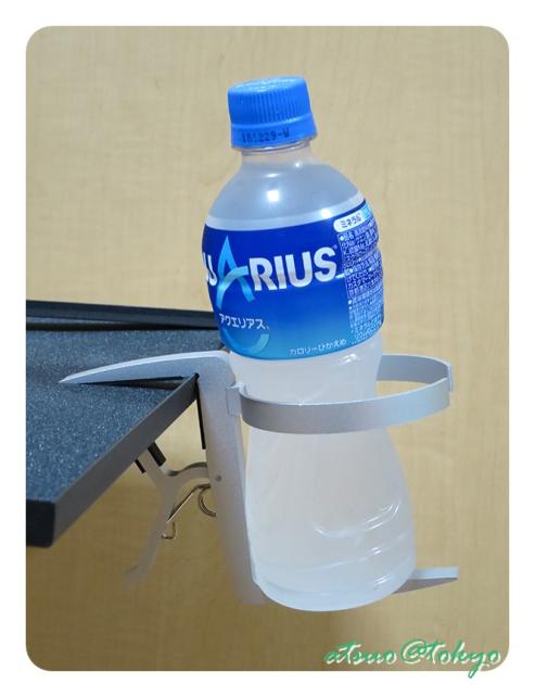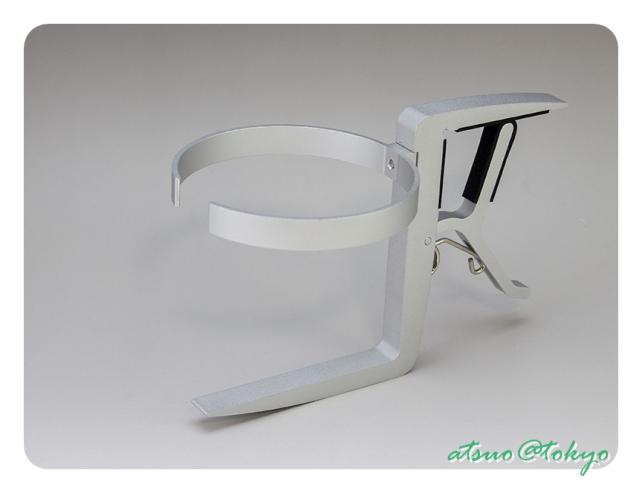 机などの天板に挟んで使うアルミ製のカップホルダーです。