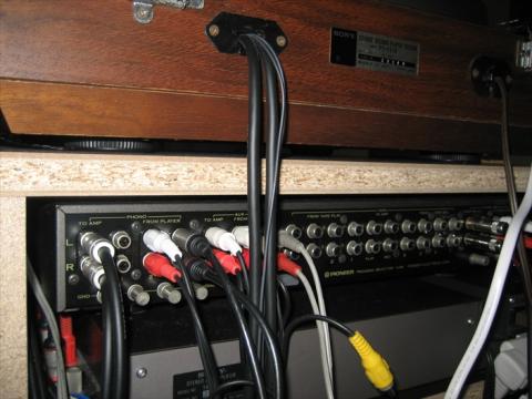 右側ケーブルは2台のプリアンプ切り替えです