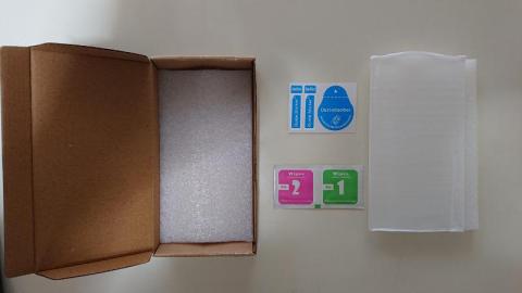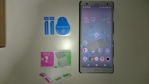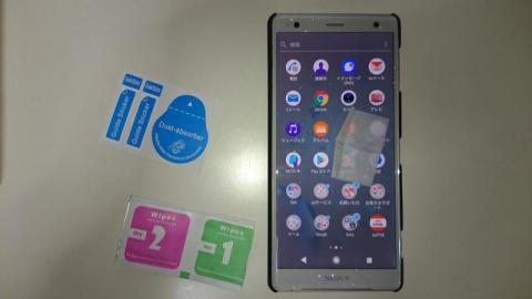 二重三重に保護されたガラス系保護シートと、貼り付けのためのクリーナーと貼り付け時に使用するシール