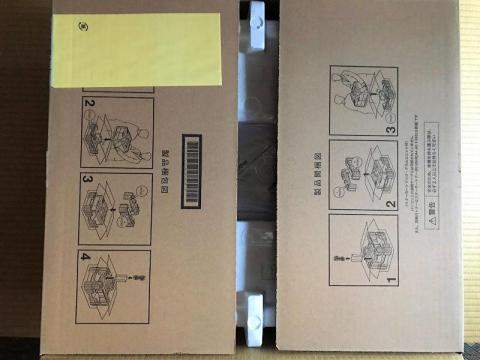箱に取り出し方まできちんと印刷されていて、この辺りはブラザーらしさが出ています。もっとも、2人がかりで取り出すように指示されていますが、本体重量が17.7Kg程度のプリンターですから1人で充分でしょう。ちなみにC544dnは約21Kgとのことですから、ある程度は軽量化されています。