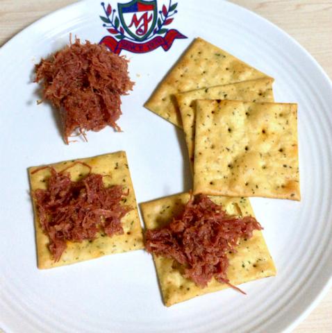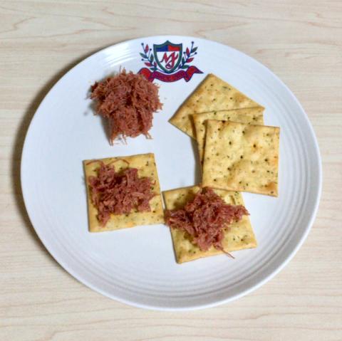 今回は、特に「調理」をせず「クラッカーに載せただけ」です。