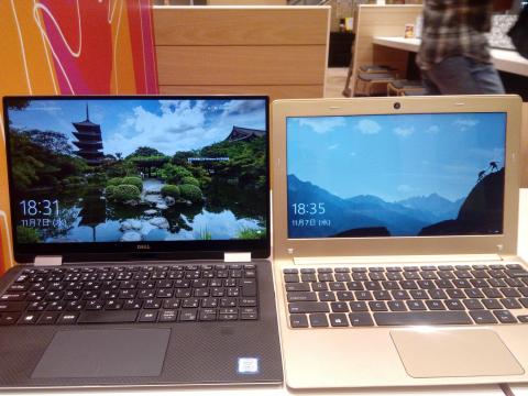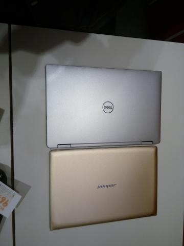EZBook Airのキーボード部分が見切れてしまっていますが、ほぼ同じサイズの画面フレームに、13インチの画面を押し込んでいるのはすごいなと思いました。この写真ではわかりにくいですが、発色もXPS 13 2in1のほうが優れていました。