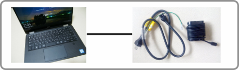 付属品は、ACアダプター&電源ケーブル、USB type-C ⇔ USB A(3.1対応?)変換ケーブル、そしてアクティブペンです。他に説明書などと、デルアンバサダー関連のモニター要綱、返却時の内容物チェックリスト、Windows初期化方法の説明書、ヤマト運輸の着払い伝票などでした。