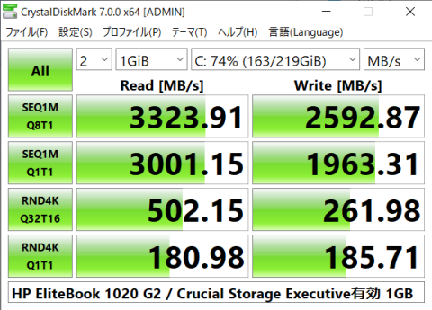 というか、本来遅いはずなのに、HPのPCに搭載されていたSATA接続のSSDがたまたまCrucialのSSDだったので、「Crucial Storage Executive」をインストールできてラッキーだったと考えた方が良いですね。