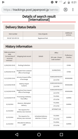 ちなみに頼んだのが11月6日で届いたのが11月15日。