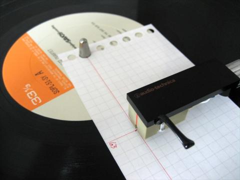 方眼罫のルーズリーフです レコードプレーヤーのカートリッジはレコードの内周と外周では