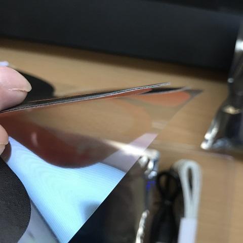 裏面の粘着シートは既に貼られていました。スライム状でベタベタします。