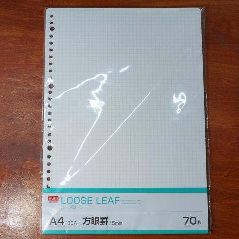 紙は薄いめ、100枚綴じ、方眼は片面で、1冊540円(Amazon)、たしかに書き味はよかったような気がします。 - 4穴バインダー対応です。30穴のバインダーは使用していませんが、4穴はよく使います。