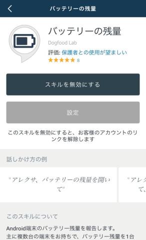 Amazon EchoのAlexaスキル「バッテリーの残量」になります。