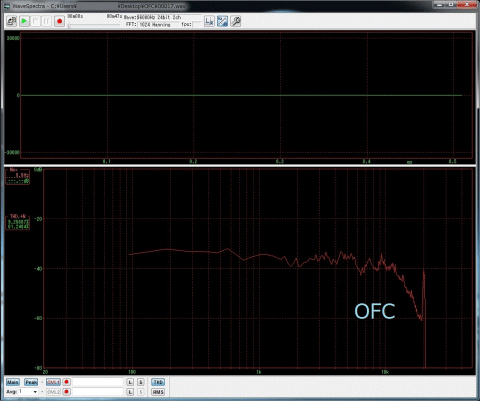 後日、上のグラフとは別に録画して音声抜きだし、GIFアニメにしてみました 録画して音声を再生するとアルミクラッド線はシャーッという高音が出ていますがOFC線は,オーバーに見て高域がおとなしい感じはします これがフラットと言うのか。 時間が開くと判りにくいですが録音して比較すると判りやすいです。