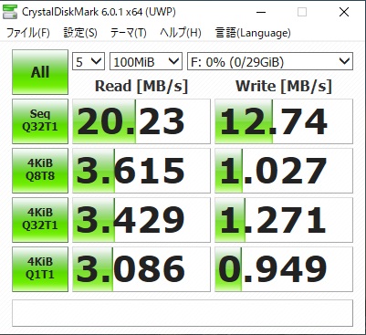 スマートフォン本体でA1 SD Benchを使用して計測。
