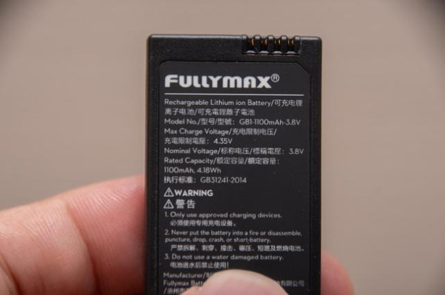 Fullymaxというメーカー製で、バッテリー容量は1100mAhなのも付属の純正バッテリーと同じです。サードパーティ製でもバッテリーを販売していますが、購入価格が純正とほとんど変わりないのでメリットは少ないですね。飛び抜けて容量が大きいなら話は別ですが。