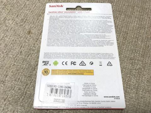 今回の特価品となっていたのは、SanDisk製のUltra 128GB、SDSQUNS-128G-GN6MNです。海外パッケージ品のため、保証は店舗保証の1ヶ月間のみとなります。