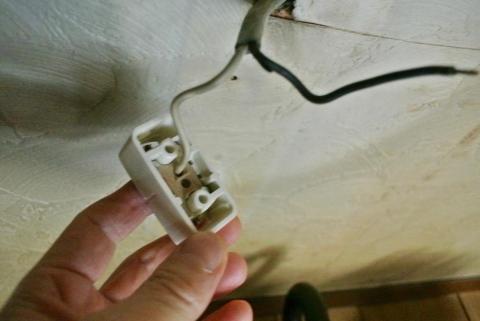 この種の器具の場合、天井から伸びる2芯単線ケーブルが直付け配線になっているので