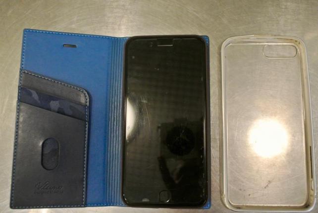パチンとiPhone7+をはめ込んだ様子 右は子供が使っていたポリカボネート製カバーです