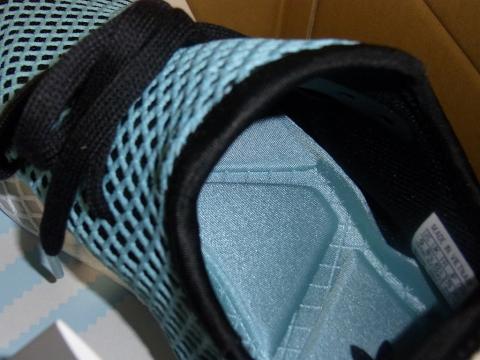DEERUPT RUNNER はタン部分とシューレースホールの部分等に樹脂シールが貼られており