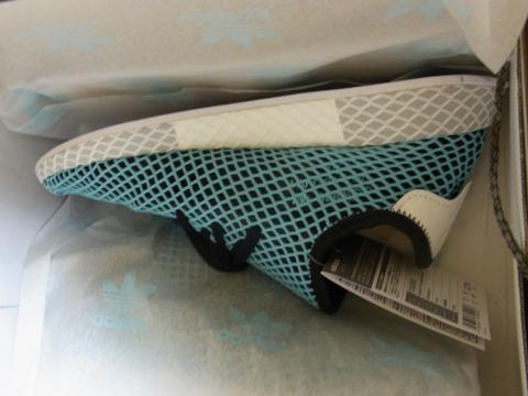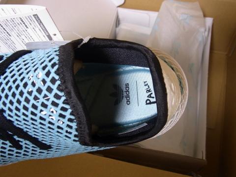 トレフォイル / ヒールパッチにNFCパッチ対応するスマートフォンと通信し、このシューズがどのように海の保護に役立っているかを学習できるのがパーリーコラボが少し割高の要因かもです。