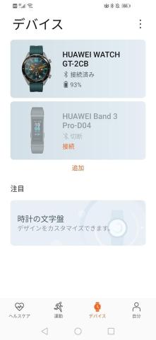 ※HUAWEI Health上では、デバイスを複数台同時接続できません。