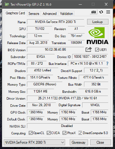 ですのでGeForce RTX 2080Ti FTW3は現状のEVGA製GPUの最上位となります。