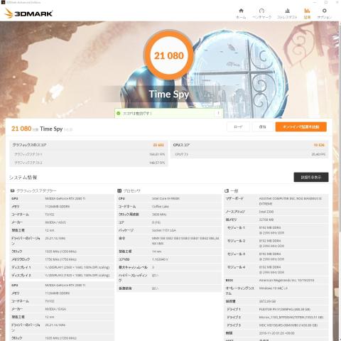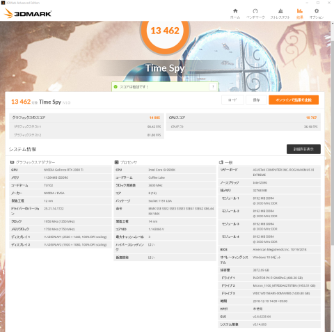 CPUはCore i9-9900K、メモリはDDR4-3000(32GB)、