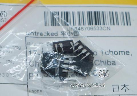 荷姿は、一応エアキャップ封筒を使っていますが、小袋にじかにICを放り込んでそれが封筒に入って届きました。ていねいにするなら、短いICレールか電導スポンジを使うところでしょうが、なかなか大胆な送り方です。まあ、もし足が曲がっていても戻して使うだけですが。