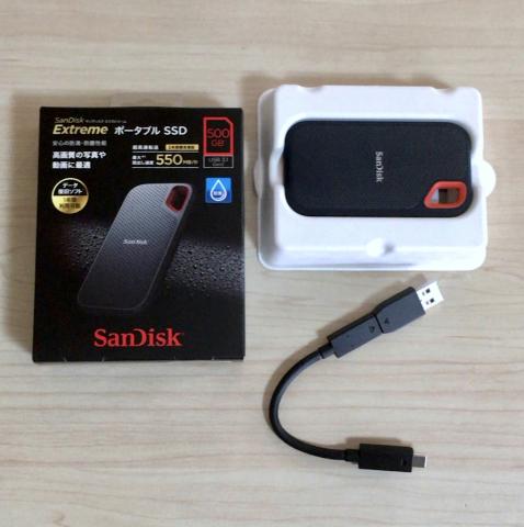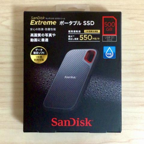 SanDisk 外付SSD 500GB エクストリーム ポータブル 読出し速度 最大550MB/秒 USB3.1 Gen2対応 データ復旧ソフト付(1年間利用特典) SDSSDE60-500G-J25 です。