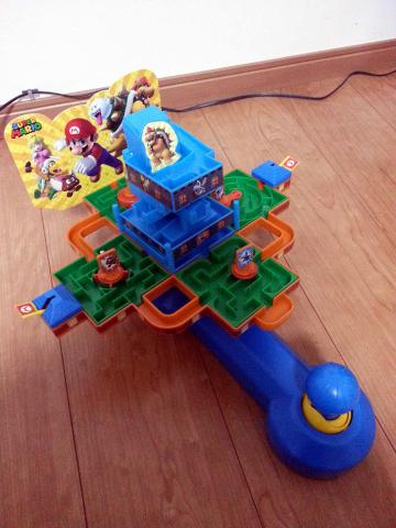 真ん中のクッパ城の上までパチンコ玉サイズの球を移動させていくのですが、これがなかなか思うようにいきません。特に、真ん中のクッパ城内は中が見えないところがあり、さらに途中の隙間から下に落ちてしまうこともあります。