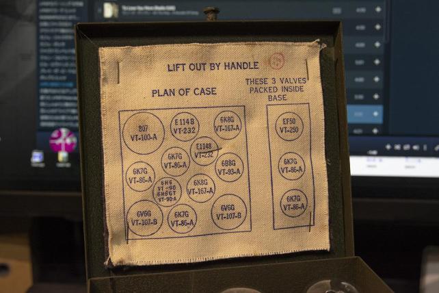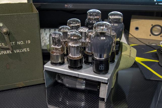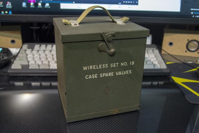 第2次大戦時代、英軍で使われていたWireless Set No.19(No.19無線機)のスペア真空管一式を格納するための箱。