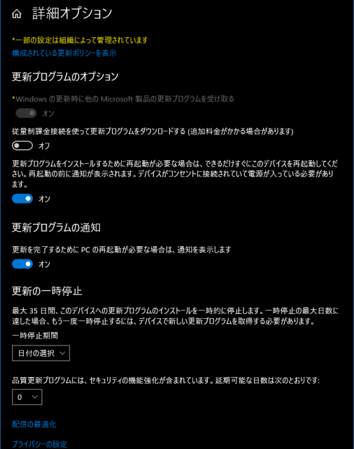 設定画面から「更新とセキュリティ」-「Windows Update」-「アクティブ時間の変更」 と進んで、「このデバイスのアクティブ時間を、アクティビティに基づいて自動的に調整する」をオン
