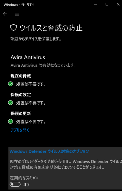 Aviraを使ってるんだけど、Defenderも有効に出来るんだね