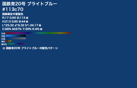 実車では国鉄/JRが制定するところの「青20号」という色で、0系新幹線のストライプの青と同じです。