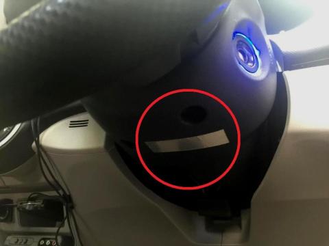 室内はハンドルコラムカバー部に1ヶ所貼ってみました。