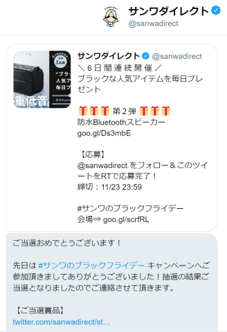 2018年12月に行われた「#サンワのブラックフライデー」で当選しました。