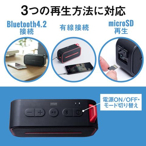 再生方法もBluetoothのほかに、有線接続とSDカードからの再生ができます。