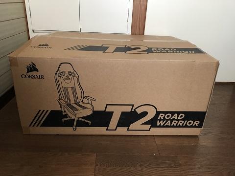 本年9月くらいに発売されたCORSAIRのチェアーです。「T1 RACE」というチェアーもあったけど「T2」の方が色の扱いが控えめであったのと自分の車のシートに似てるんじゃね?と思ったのでこちらに決定しました。
