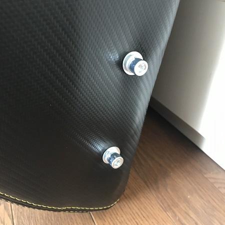 背面シートを着座シートに乗せて、ヒンジ穴を合わせ外したボルトで締め直せばほぼ完了です。しっかり締めておかないとヒンジとレザーが擦れて穴が開いたりするのでがっちり締めることが大事ですね。