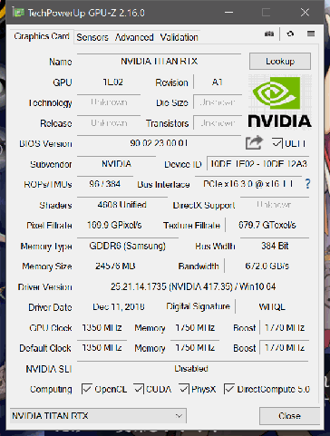 基本スペックはGPU-Zで見ると以下の様になります。