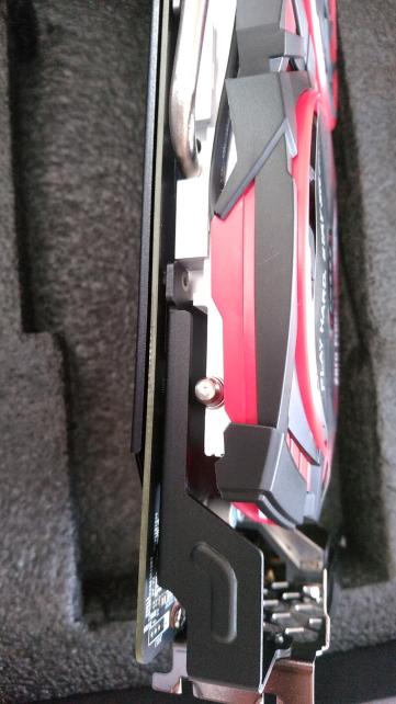 PCI-E部分は保護カバーで保護してあります。昔(HD6950時代)も確か保護カバーを使ってたような・・・初期不良を少しでも減らすためって事なんですかね?
