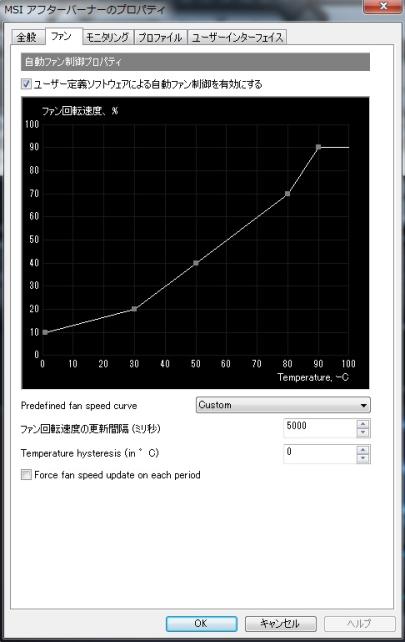 俺はファンは常に回ってる方が安心できる人なんで、常に回るように設定しました。画像ではこうなっていますが、今は負荷0%時は15%くらいで回るようにセットしてあります。