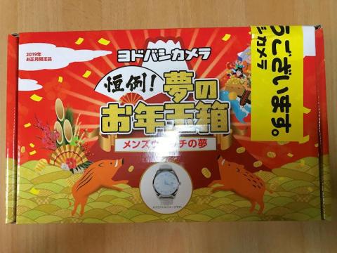 しかし、新年会出席のため都内に出向いた際、秋葉原のヨドバシカメラに立ち寄ったところ、意外と1月2日時点で売れ残っている福袋もあることに気付きました。Webで申し込んで当然のように外れた「メンズウォッチの夢」も、その時点であと5箱だけあるというのです。実はWeb上の情報で今年はそれほど中身の時計が良くないということは把握していたのですが、残り物に福があればと思い、念のため買ってみることにしたのです。