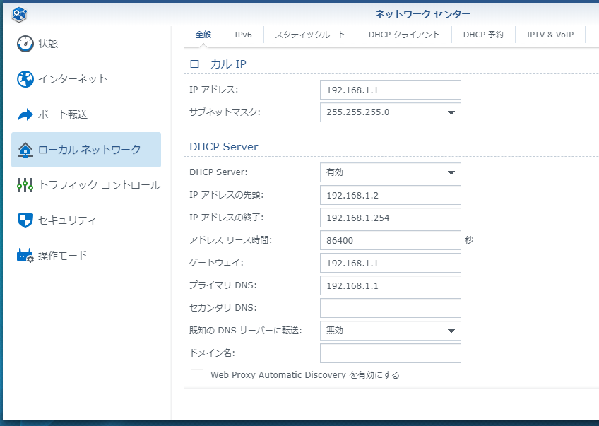 DHCPのIPアドレス先頭を192.168.1.2から、192.168.1.3に変更。