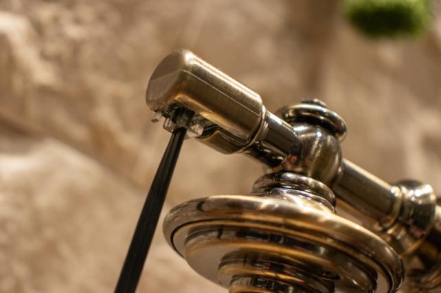 一件、木と金属で作られているように見えますが、商品ページにも記載されている通り「プラスティックとレジン」で作られています。金属風の部分がプラスティック、木のように見える部分がレジンで作られているようです。