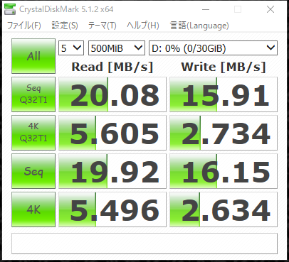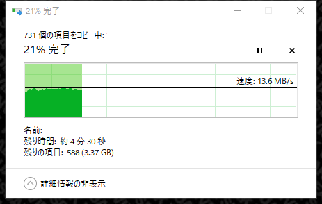 ちなみにデータ転送しても13MB/sで転送してるので「CrystaDiskMark」は正常な模様。