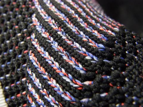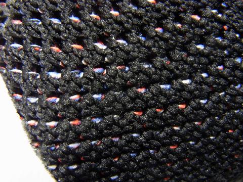 黒ベースの配色だけど、いろんな色を使った糸が編み込まれており