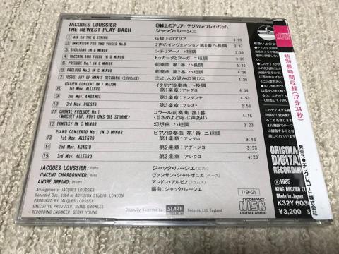はっきりと言ってしまえば、「デジタル・プレイ・バッハ」の方を聴く前にこちらの初期版を聴いていたとすれば、恐らく私はここまでジャック・ルーシェという人の演奏を気に入ってはいなかったと思います。