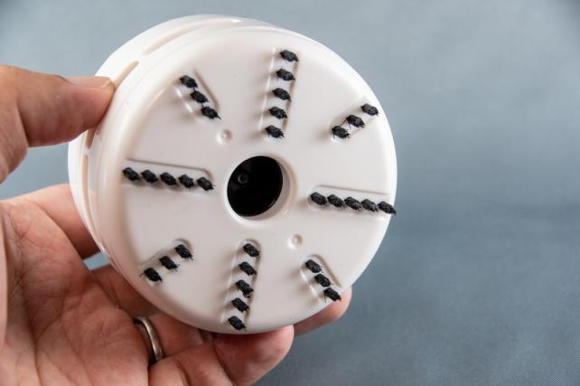 1つだけ惜しかったのは、このブラシ部分で自重のすべてを支える構造になっているので、付属していた梱包用のプラスティックのトレイに入れておかないと、ブラシ部分が曲がってしまうことです。底面を回すことでブラシが突出してくれるようなギミックがあればよかったのですが。